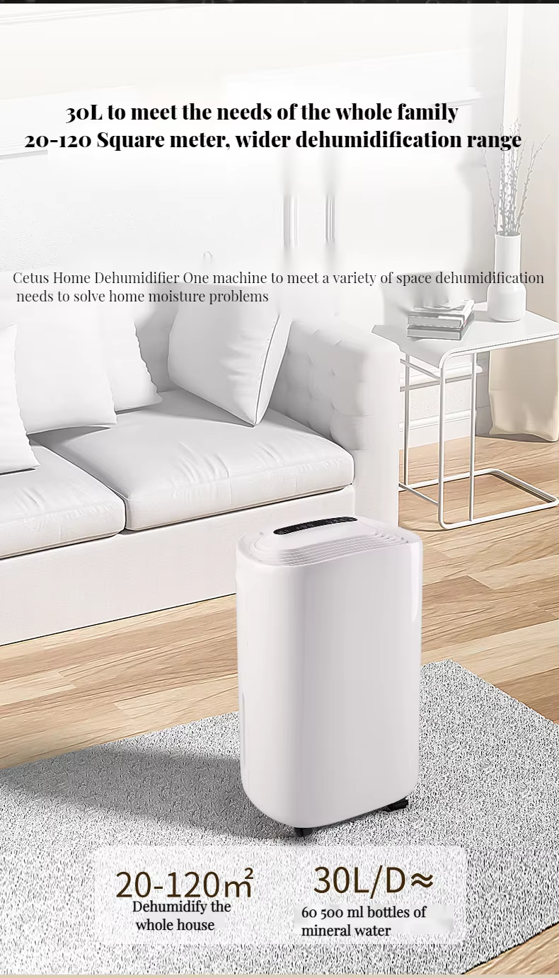 Portability is enhanced with integrated handles and smooth-rolling wheels, making it easy to move between rooms. The washable air filter traps dust and allergens, promoting cleaner air. Available in white and grey, this dehumidifier combines style with functionality. Perfect for homes, offices, or basements, it helps prevent mold, mildew, and dampness. As a reliable product from China, it ships globally with a lead time of 40 days after advance T/T payment.