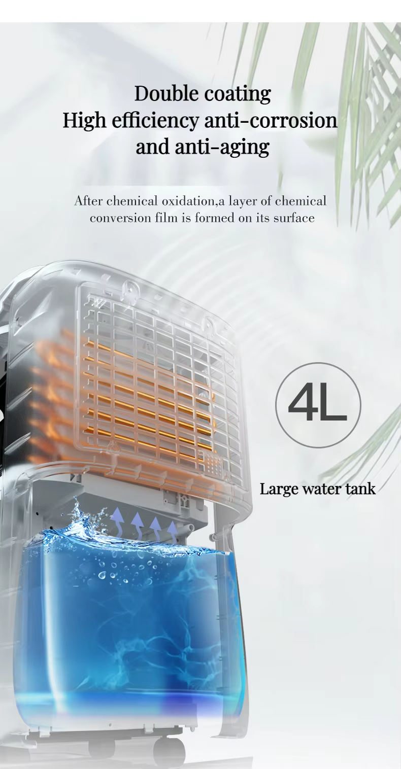 Safety and convenience are at the core of this dehumidifier. It automatically shuts off when the 4L removable water tank is full, indicated by a clear warning light. The 1-24 hour timer and memory function let you customize operation without resetting preferences daily. Additionally, the automatic defrost feature prevents coil freezing in low temperatures (5°C-35°C usage range), ensuring durability. With noise levels kept below 45dB, it operates quietly without disrupting your activities.